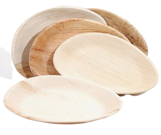 Feather Palm crafts Areca Leaf plates, 100% natural and eco-friendly.